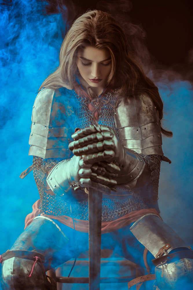 One of the most challenging steps of publishing a book is designing the cover. Of course, you want the book cover to catch the eye of the passerby or online shopper, but you also want to deliver a message of what the title and contents portray. In the beginning of the publishing process, Warrior Through Grace started with a strong and fierce picture of a male warrior, covered in armor, with a bloody battle occurring in the background. Something just didn’t look right and didn’t convey the message in my book. Sure, the battles of my life were fierce, but I was not a man and I didn’t leave a bloody trail behind me. At least, I hope not! My publisher then asked me to consider some female warriors. From the selection they gave me, there were a variety of frightening women dressed in black, ladies with shaved heads or a mohawk, and then one that stood alone as peaceful and accomplished. The one currently on the cover of Warrior Through Grace was no doubt the one! First of all, she looks like my middle daughter – strong, courageous, and humble. She is clothed in her armor, surrounded by the spirit of God (blue cloud), and praying for guidance and God’s will to help her fight, or possibly praising God for the battle she just went through. The picture spoke to me because in all my trials and tests, when I submitted to God and gave Him the reigns to my life, that’s when I found peace. The warrior is also bowing her head, which says the honor is given to God for His work in her. Most importantly, she is clothed in the Armor of God with her sword of the Spirit, breastplate of righteousness, belt of truth, and probably her helmet of salvation lying on the ground next to her feet.